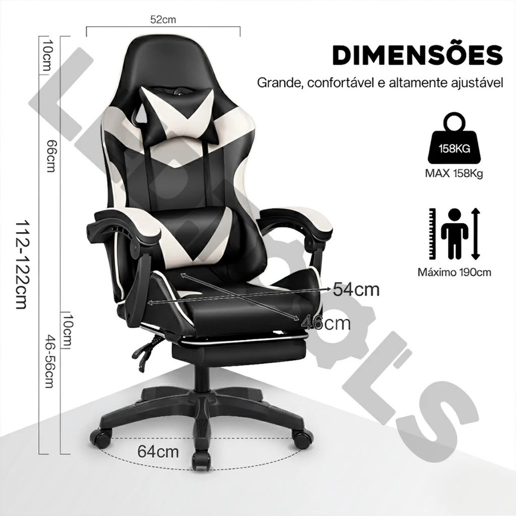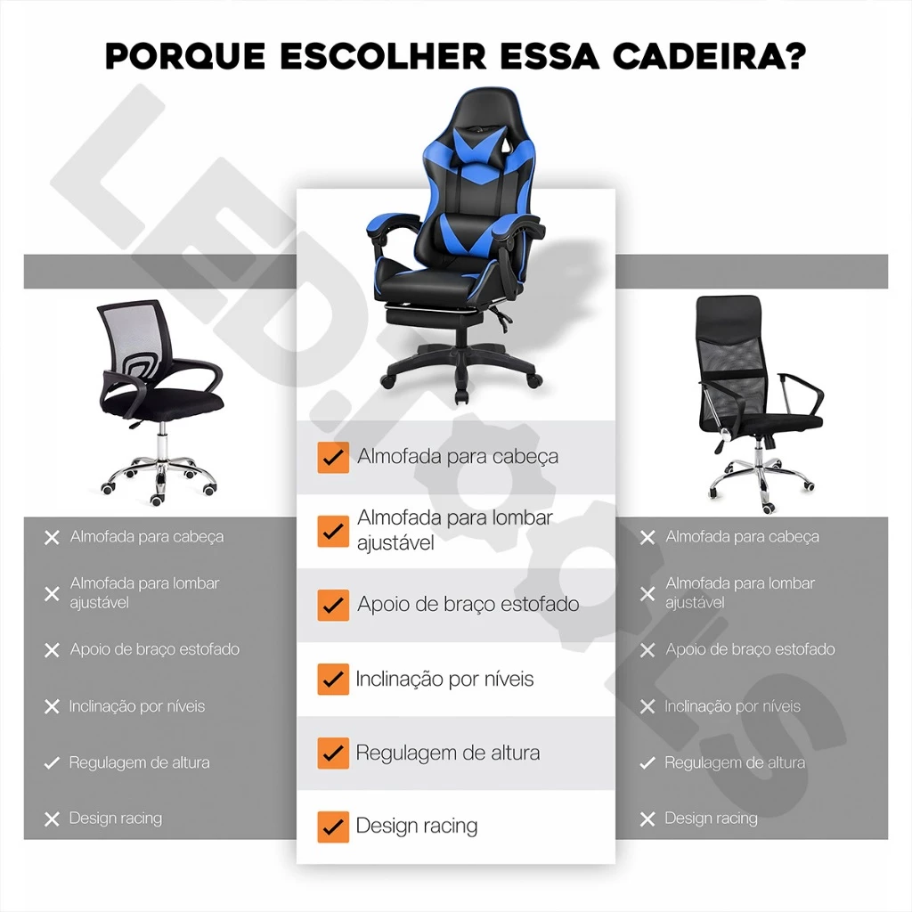 Cadeira Gamer Profissional Escritório Ergonômica Reclinável Confortável Com Rodinha E Apoio Para Pés